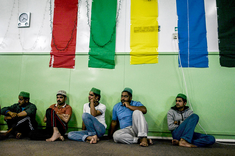 2017年4月13日,巴基斯坦移民在希腊第一大岛克里特岛的一个清真寺参加星期四的祷告。据估计约有5500多名巴基斯坦工人住在克里特岛。 许多工人离开巴基斯坦前有着可观收入的工作,但仍不惜牺牲一切前往欧洲,变成没有居民身份和家庭的非法移民。但因为他们的农业背景和经验而受到了当地人的欢迎,现大多数人都在温室工作。克里特岛已成为巴基斯坦移民和难民的重要目的地。希腊作为难民从地中海进入欧洲的首要登陆国家之一,背负着十分艰巨的任务。