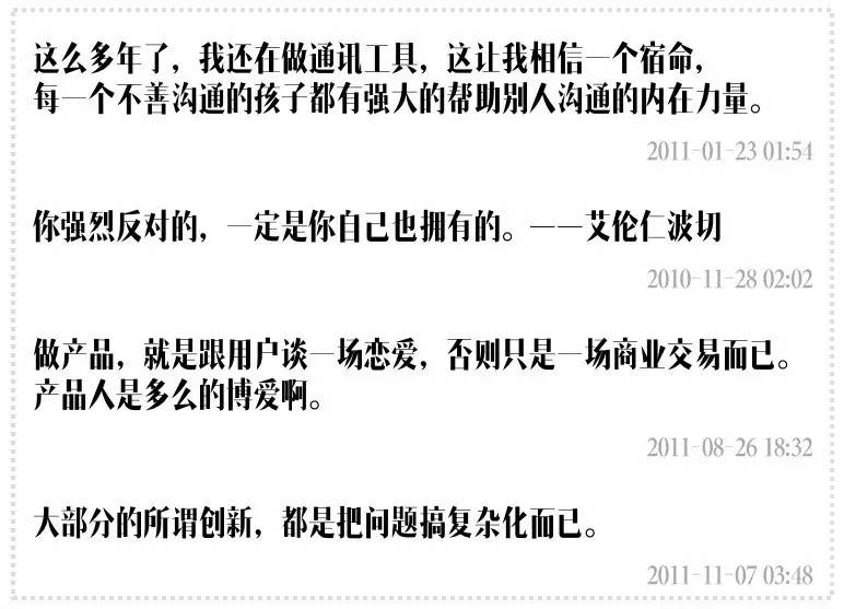 当时还没有多少人谈“用户体验”,这句话却触动了张小龙:“我在做Foxmail的时候,不自觉地模拟了用户的行为,只是不知道这叫做用户体验。”