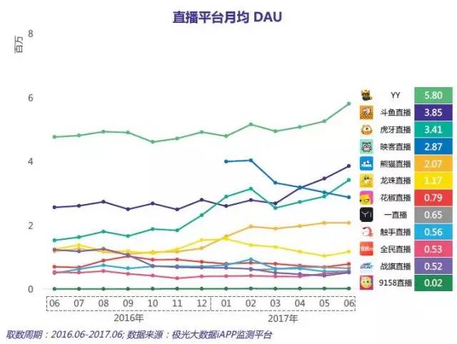 短短一年,浩浩荡荡的“千播大战”已成过往云烟,战役规模倏而骤减到“百播”,甚至“十播”。在泛娱乐板块,YY、映客、花椒、陌陌傲视群英,而游戏板块,斗鱼、虎牙、熊猫和触手抢占鳌头。