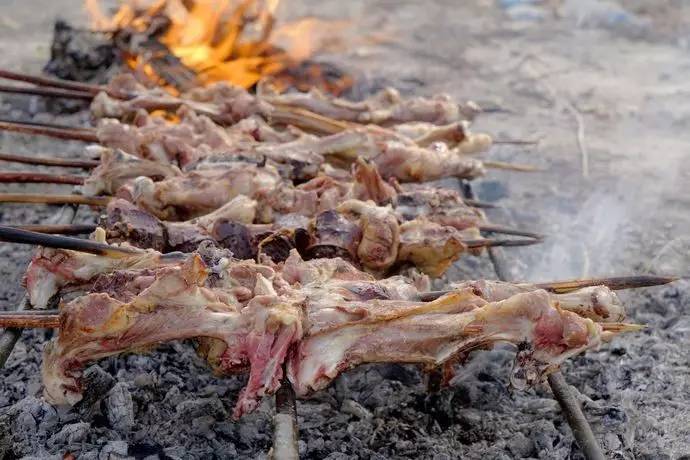 ▲新疆人民的烧烤特别接地气,全是肉,太实在了。