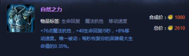 S2赛季中,有一段时间坦克英雄统治了联盟。以自然之力为首的 “绝望三件套”(自然之力、狂徒铠甲、荆棘之甲)成为当时坦克英雄们必出的装备,面对三件套成型的坦克,你就能体会到什么叫肉得让人绝望。因为过于OP,自然之力这件装备在S3被删除,一代神装就这样在众多坦克的叹息中谢幕。