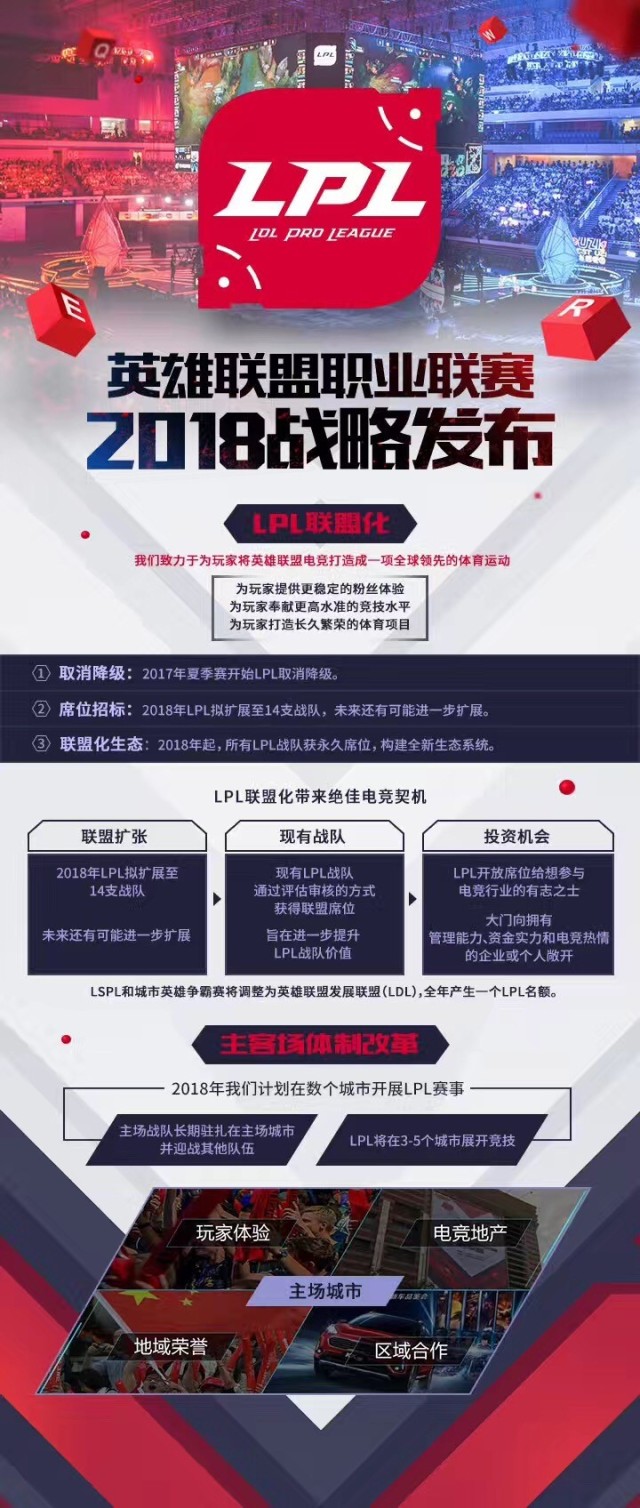 LOL的赛事丰富并一直在良性改革。今年首次举办的洲际赛增强了各赛区间的互动,赛制新颖,广受好评。腾讯电竞在今年LPL春季赛结束后推出的LPL联盟化的联赛改革方案也让人眼前一亮。这种联盟化、地域化、增加主客场机制的联赛改革能在全国范围内更好地推广LOL,不再只局限于上海。这种模式一旦成功施行,意味着LPL将比肩中超、CBA等传统体育联赛。小编想到以后能在家门口看到LPL的现场比赛还是有点小激动的。