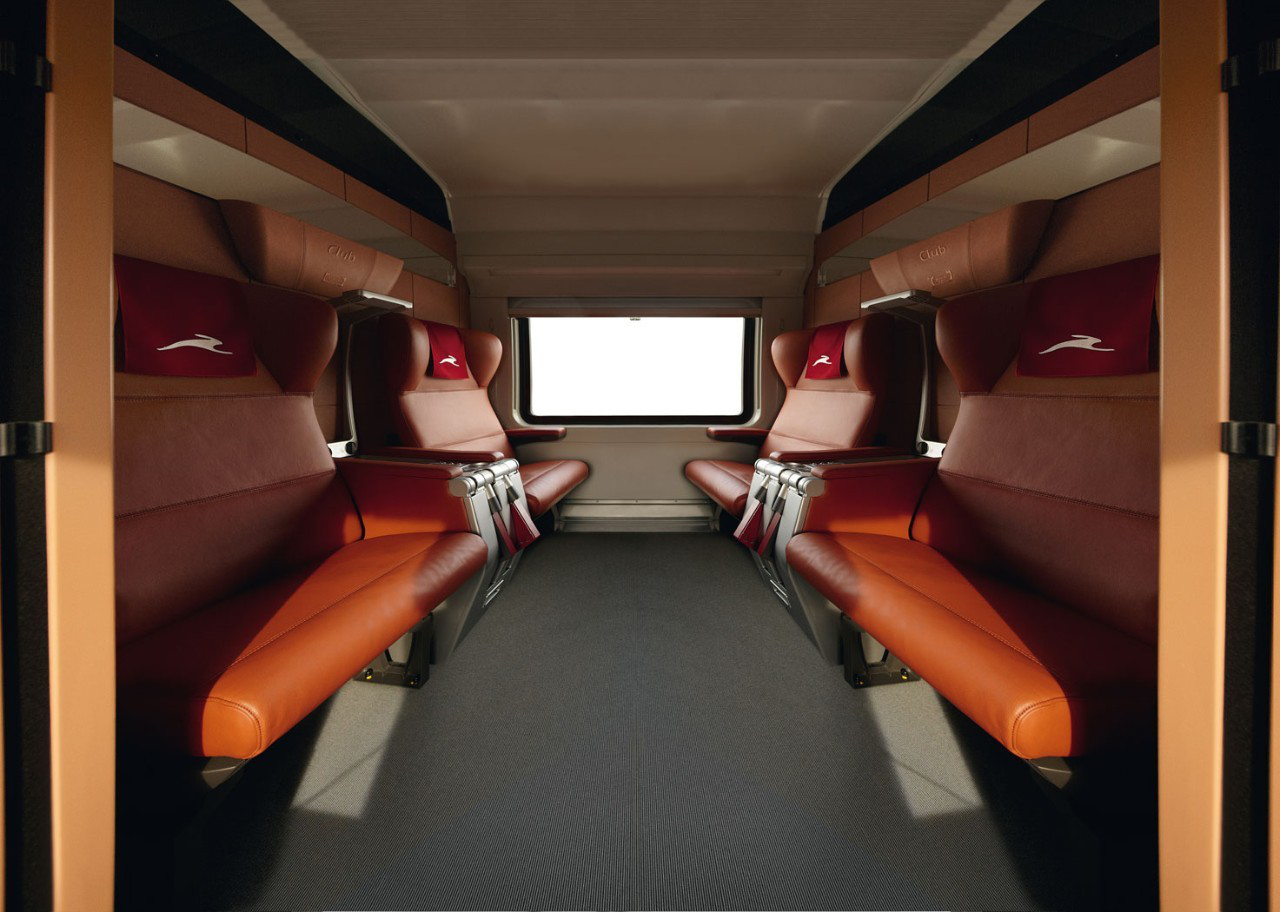 CLUB:CLUB采用面对面的形式每排排列三个座位,空间最为宽敞,座椅可以调节至斜躺的程度。如果想在列车上保留足够的隐私或者不希望被打扰,俱乐部车厢里还提供四人一间的小包间,包间里有衣柜,和PRIMA一样也会免费派发小吃和饮品,而且CLUB车厢可以在座位上直接点餐,服务员会将餐食送到座位上。
