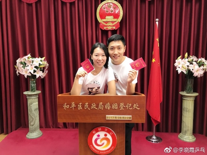 李晓霞在微博写道:“2017年8月22日,我们领证了,我的人生多了一个本,我的生活多了一个他。过去的二十几年有乒乓为伴,而未来的几十年,有他风雨相伴。我是幸福的,我们会一直幸福!”同时,她也确认了他们的婚期为9月10日。