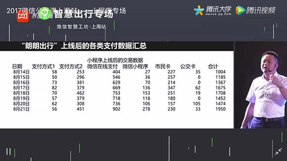 基于这些问题,“郎朗出行”推行双支付案例。以乐清市公交案例为例,微信提供了两个入口:一个是公众账号的小程序入口;另一个是小程序,如果加上置顶功能,就可以方便随时调用了。下表中的一些显示了微信小程序对交易效率提升了近10倍。