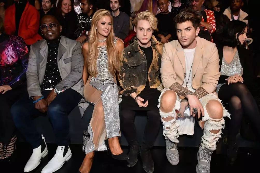 美国偶像出道的迷人男神Adam Lambert(亚当-兰伯特)也参加了纽约时装周,并且给帕里斯-希尔顿做起了绿叶,一起看起了The Blonds collection的大秀。亚当-兰伯特身穿沙色西装和破洞牛仔裤,依旧画着他标志性的烟熏眼妆,再加上一块上等美玉,依旧狂放不羁。