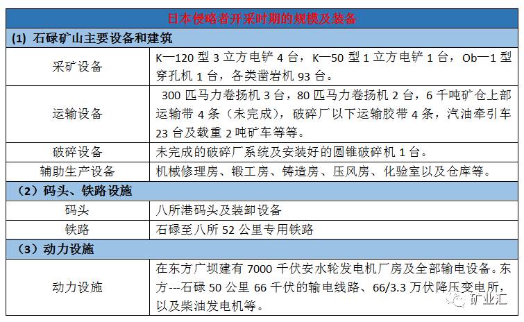日本掠夺石碌的矿产资源,以半机械化的生产方式,主要开采北一主矿体下部坡积矿及北三坡积矿等几个层面。