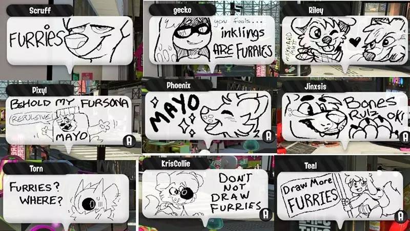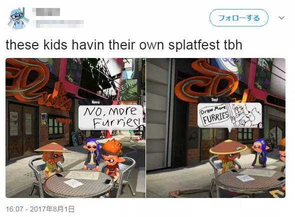 操作拟人化的乌贼少年少女,用各式各样的武器上演喷墨大战的TPS新作《splatoon2》,已于上月底在Nintendo Switch上全球同步发售。作为游戏一大特色,玩家可以在游戏广场上观看其他人上传的自定义图片。而前些时候,许多美服的玩家发现自己的广场上,满是与“Furry”相关的图片。如此突如其来的现象也是让他们看的一脸懵逼。