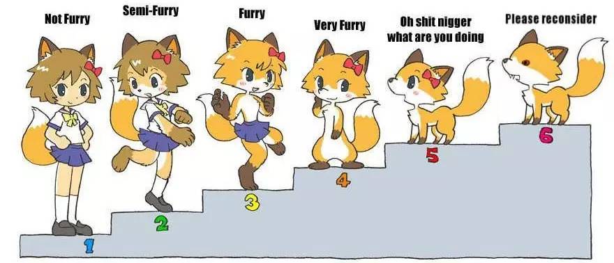 下面就用这张盛传于网络的“兽化度等级图”,来对“什么是Furry”做个简单的说明吧。
