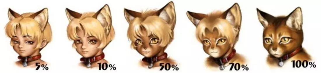 其中的“级别1”,就是如今日系作品中常见的兽娘,基本保有着人类的造型,附加有兽耳兽尾等元素。但这种等级的角色,在欧美正统兽迷眼中并不能算是Furry;而到了“级别2”,角色身上开始出现动物的体毛,脸部和手脚也有了动物脚爪的特征。这个阶段,可以称之为准Furry;至于“级别3”,角色的头发和身体已经全部变为兽类的体毛,而四肢的兽爪特征更为明显。由于体毛覆体,因此即使不穿衣服也问题不大。而这个阶段的角色,才能算的上是正统的Furry。