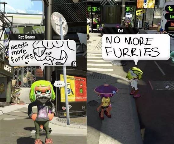 看到这里,各位也能够隐约察觉到所谓Furry,指的是将四足步行的动物拟人化。而作为这次事件主战场的《splatoon2》中,有着触手等特征的乌贼少年少女的原型,并不是四足步行且毛茸茸的兽类动物,这与Furry的原教旨出现了冲突。那这是否表示着,本作在这次的事件中纯粹属于无端躺枪呢?