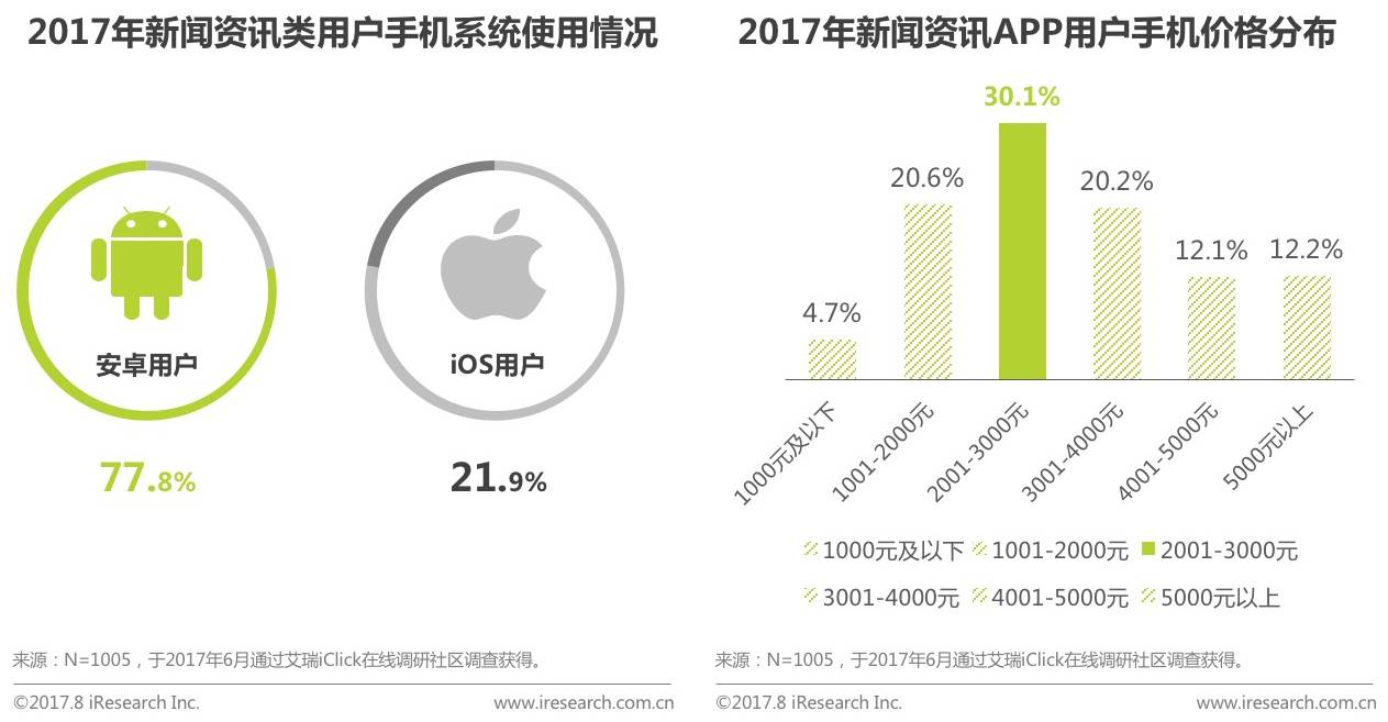 资讯类APP用户手机价格集中在2001-3000元的安卓系统机