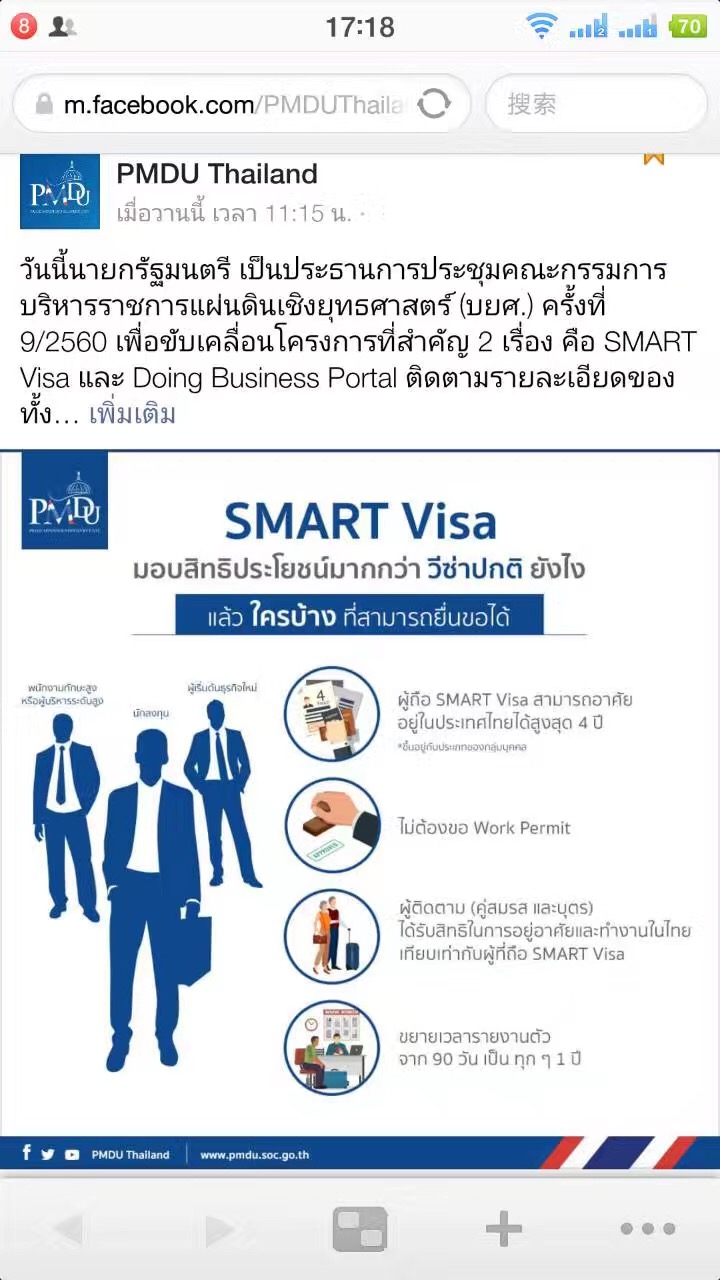 泰国总理政策管理办公室负责人安鹏先生表示,在以总理巴育上将为主席的国家战略公务管理委员会会议上,已经初步通过了给予部分外籍人士四年智慧型签证(Smart Visa)的提议,共有三种类型的外籍人士可申请四年智慧型签证,包括: