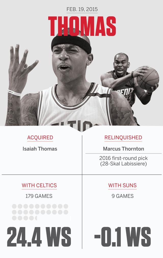 15年交易截止日前,凯尔特人还从太阳得到小托马斯,他们只放弃了一个来自骑士的首轮签就得到这位得分高手。在这个赛季,凯尔特人以40胜42负排名第七搭上了季后赛末班车,不过还是终究因为实力悬殊,首轮便被骑士横扫出局。
