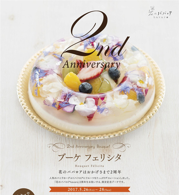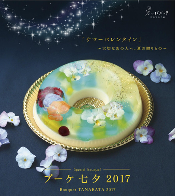 『花のババロアHavaro』是日本第一家制作“花果冻”的甜品店。采用30多种可食用的花瓣,通过不同的色彩搭配,放入到不同形状的果冻中,形成了不同款式与口味的“花果冻”。这些“花果冻”被制作成了3种不同的形状,分别为“Bouquet”直径15厘米的甜甜圈形状、“Fleur”直径7厘米的花朵形状,以及“Petale”直径35毫米的方形。