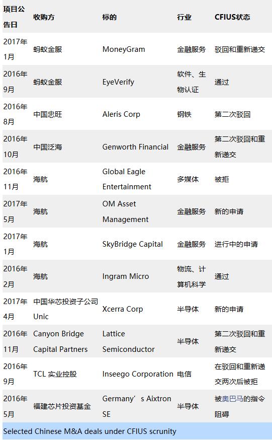 上个月,由于无法得到CFIUS的批准,海航集团拟向机上娱乐和互联网服务提供商Global Eagle Entertainment Inc.投资4.16亿美元的交易无果而终。其他交易亦遭遇审核延迟。
