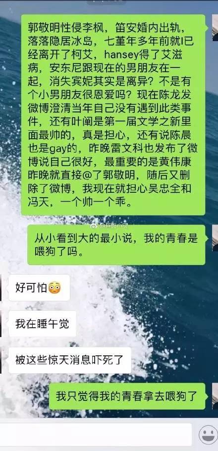 一时间他们的消息被翻了个底朝天,粉丝们信誓旦旦地分析着谁谁是gay,谁和郭小四在一起过,还有谁得了艾滋,李枫指出的“一表人才的直男”又是谁......一时间微博恍若豆瓣八组。