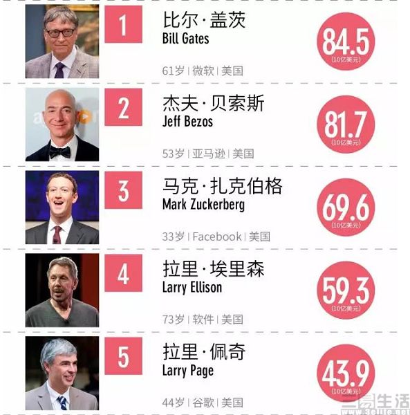 今日,《福布斯》全球科技100富豪榜出炉,不同于传统领域一代一代人累积财富,科技圈里的富豪们,拼的是技术的头脑,从榜单上来看,第三名是年仅33岁的马克扎克伯格,第二名是当过半天首富的亚马逊CEO姐夫,哦不,杰夫·贝索斯,而榜首依然还是万年不变的比尔盖茨,比大爷也是在用生命阐述什么叫你大爷永远是你大爷啊。