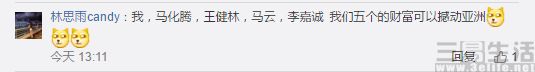 还有网友豪迈地表示,我,马化腾,马云,王健林,李嘉诚,我们五个的财富可以撼动亚洲。诶,这位朋友啊,你才为什么天上会有牛在飞呀?