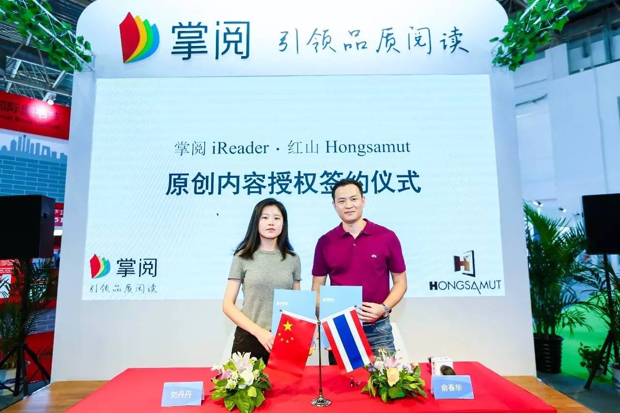 8月24日,作为2017年北京国际图书节“一带一路”文化合作重要活动之一,掌阅与泰国原创出版龙头公司——泰国红山出版集团(Hongsamut)签订合作协议,将掌阅优质原创文学作品翻译成泰文,让泰国读者看到最原汁原味的中国原创小说。