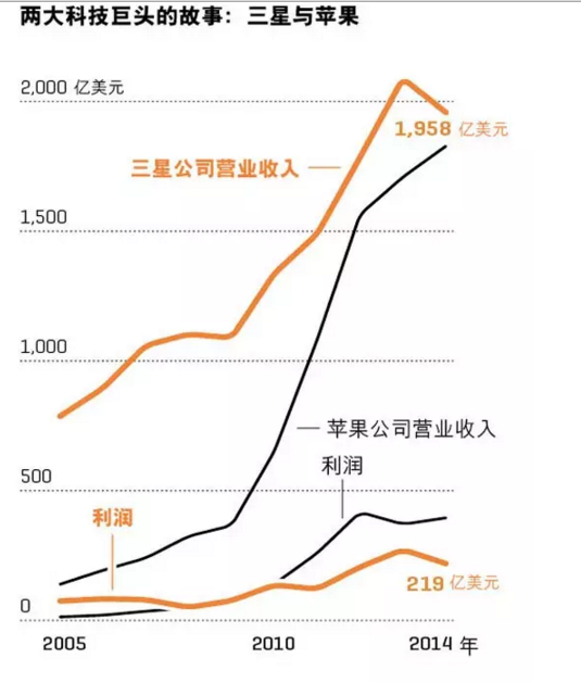 为了避免这种命运,今天的三星高度聚焦于创新,把重点放在可以改变游戏规则的进步上。这家公司一直努力将半导体、智能手机、电视机等它的所有产品做到极致。例如,三星智能手机的芯片就被认为优于英特尔的芯片。三星未能实现的,是像苹果那样创造新的行业。为了提高获得重大突破的几率,三星电子去年在研发方面投入了将近140亿美元,是苹果在2014年60亿美元研发投入的两倍以上。