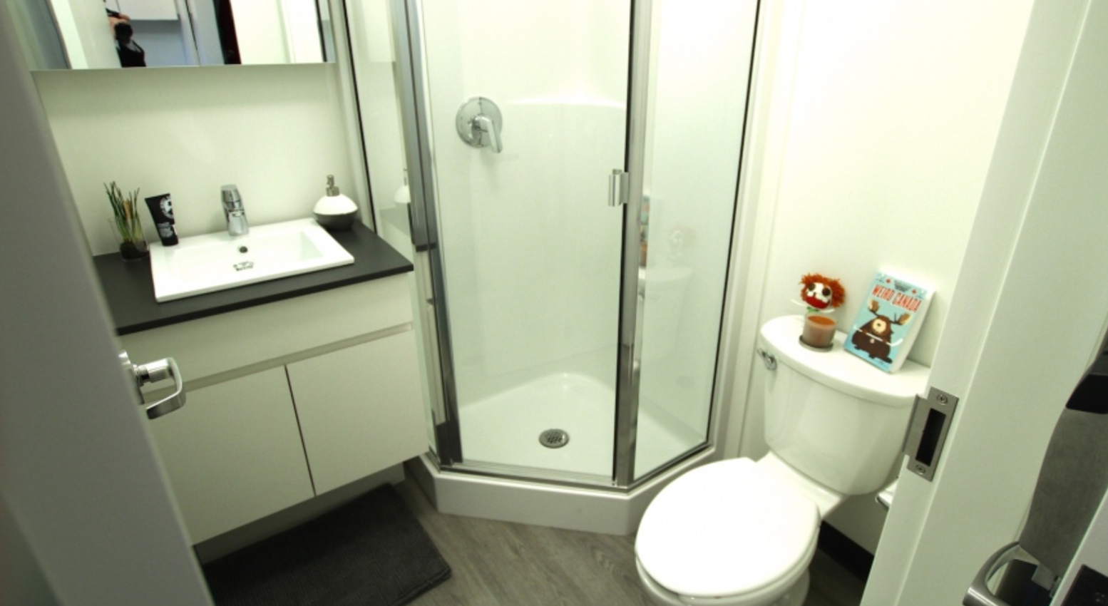 尽管要让学生搬进一间小公寓,还需要三年时间,但学校已经在学校的AMS学生巢中建了一个示范单元,以展示设计。周一上午,中庭中间的小盒子吸引了很多人的注意。“我觉得床和桌子的组合真的很酷,因为这样可以节省很多空间,我真的很喜欢这种想法,虽然这有点紧,”二年级的音乐学生Jacques Forest说,他住在UBC校园内的Totem Park公寓里,和同层的其他32个人一起共用他的浴室。“我的意思是,我很喜欢它,因为我现在没有厨房,所以有机会做饭是非常棒的,而我自己的卫生间也很不错。”