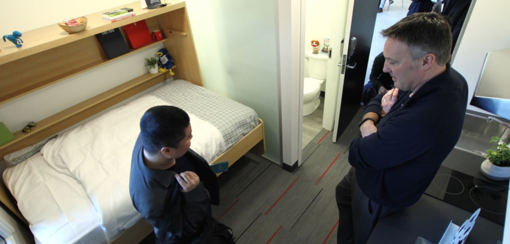 试想一下,140平方英尺(约等于13平方米)的学生公寓套房,配有设有浴室、折叠双人床和基本厨房,你是否愿意住在这里?