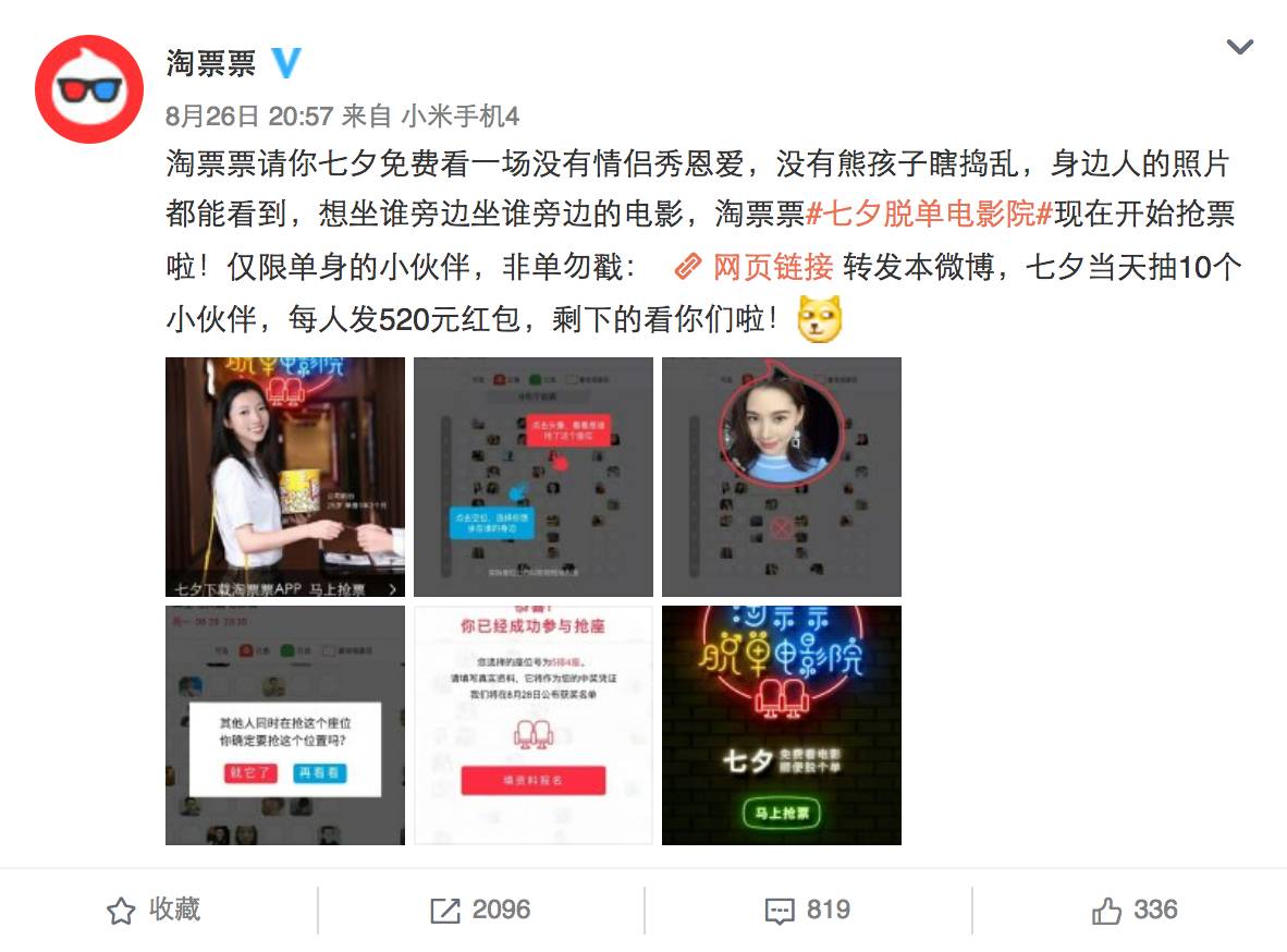 今年七夕档和去年较大的不同在于缺乏应景的“爱情片”入市,虽然近年来爱情片在影市表现不佳,但仍然是七夕档征战的重要类型。在缺乏爱情片入市的情况下,势必也会对影响到电影的观影人次。即便风头正劲的淘票票推出了一系列的优惠活动,但是缺乏足够吸引力的情况下,似乎仍然难以让观众走入影院。