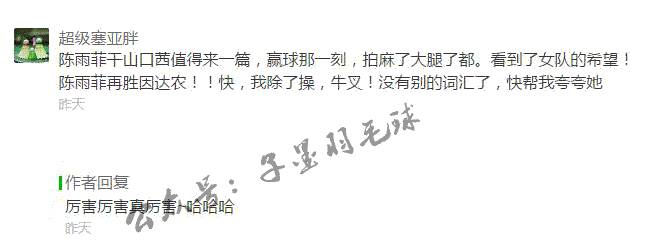 第一局的失利,也让无数球友绷紧了心,难道陈雨菲后劲不足?难道她只是运气才能赢得山口茜?诸如此类的猜疑也随之而来。
