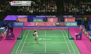 后面陈雨菲越打越顺手,将拉吊突击发挥到极致。以18:20直接进入赛点。最后一球,陈雨菲竟然双脚起跳杀球,没错,是双脚起跳。腿部力量可见一斑。