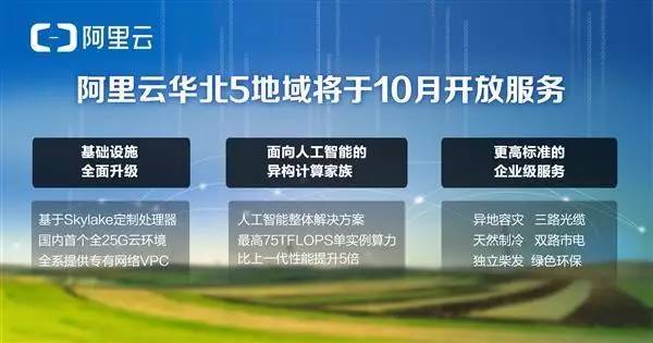 新地域地处北方最大的数据中心所在地——内蒙古。此外,阿里云还将部署国内首个全系Skylake+25G网络环境,以保证在提升云计算和人工智能服务的性能和可用度的同时降低延时度与成本。