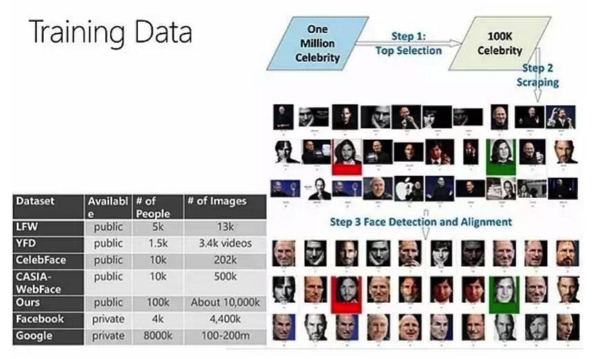 就拿他们前一段秀肌肉提到的拿下微软百万名人识别子命题有限制类(只使用竞赛提供数据)第一名来说,微软百万名人识别是微软向公众发布了大规模现实世界面部图像数据集 MS-Celeb-1M,含有 10 万个名人的约 1000 万(10M)张脸部图片,鼓励研究人员开发先进的人脸识别技术。