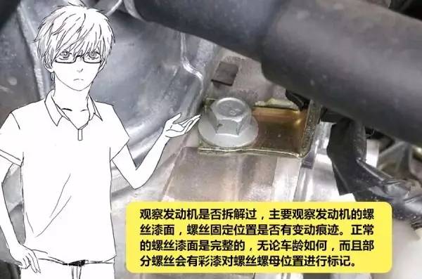 而之所以提到上述情况,是因为一旦车辆泡水较深,不懂如何处理的人难免会出现慌乱,而在水区点火,必然损坏发动机,所以我们检查泡水车时,也要观察发动机是否有拆解痕迹。