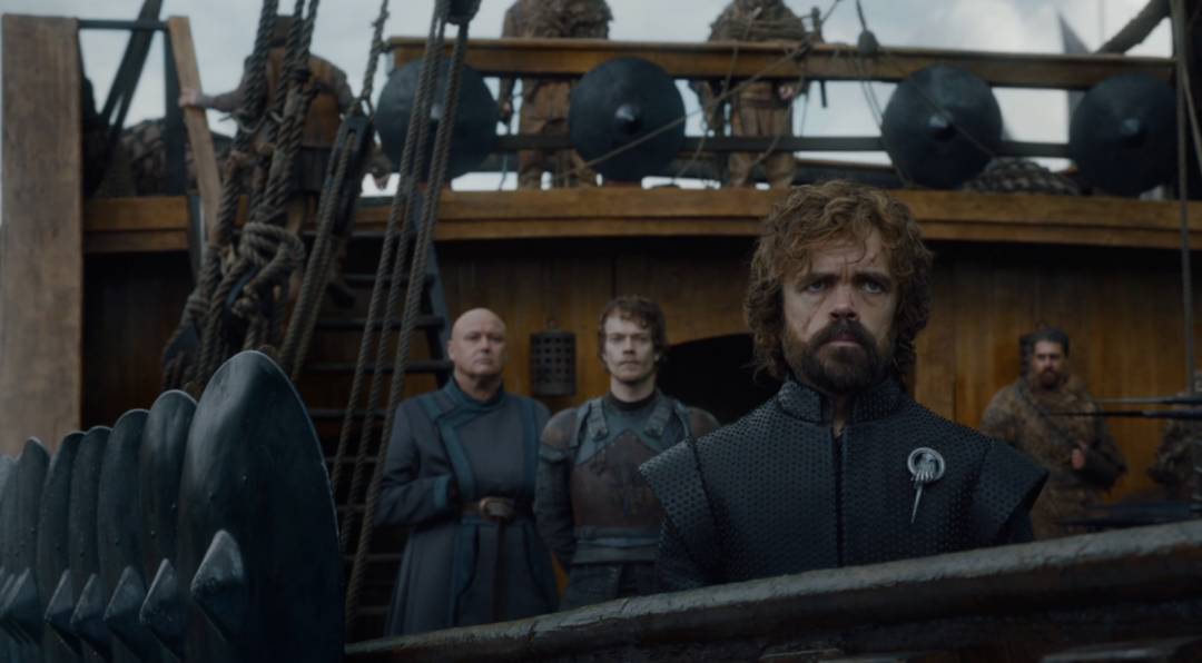 与此同时,提利昂、瓦里斯和席恩·葛雷乔伊也正驶入海湾。自席恩回到龙石岛后,我们有段时间没见过他了。