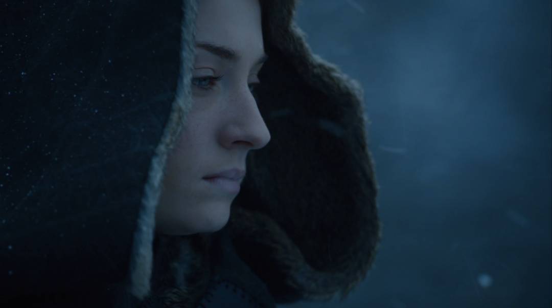 最后,同样有重要事件发生的临冬城里,一个孤独的镜头中珊在沉思中注视着某个地方。