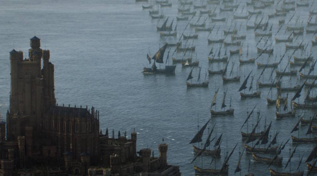 瑟曦把庞大的攸伦舰队召回到了黑水湾。他的舰队在君临城外蓄势待发。