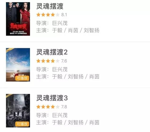 如2014年到2016年每年一季的《灵魂摆渡》,第一季的评分最高为8.1分,尽管后两季在第一季的口碑热度之上乘胜追击,同时提高制作水准,以塑造IP品牌,但观众评分依然略低于首季。