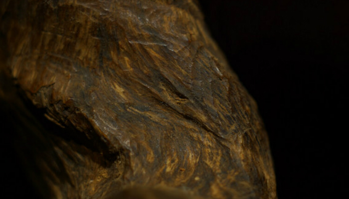 表皮光滑,很好认。一般沉香的表面呈现木质, 以浅棕色为主。