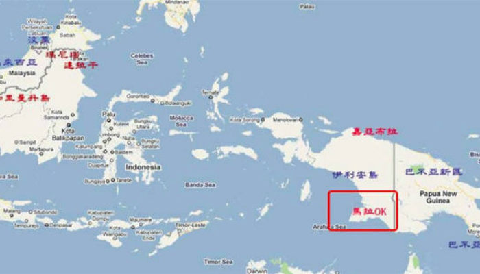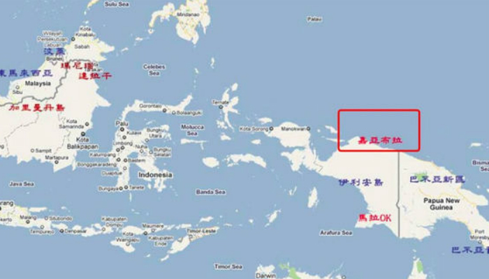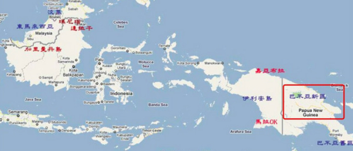 ▲ 标红地方为巴布亚新几内亚地理位置的示意图