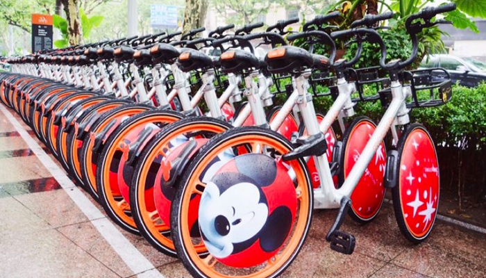 而摩拜则联合迪士尼,七夕时在上海投放了一批米奇和米妮的定制款“情侣单车”。