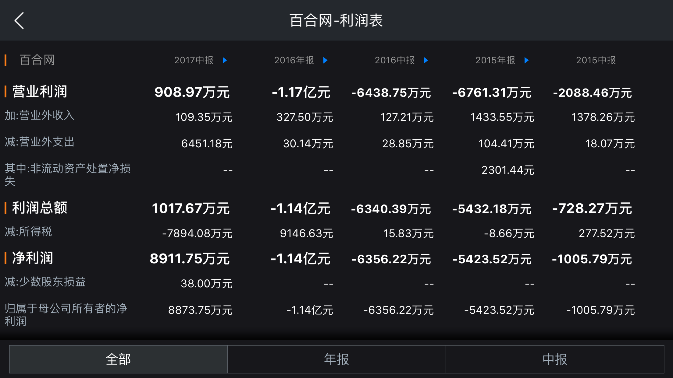 据百合网2017年半年度报告,百合网营业总收入1.8亿元,接近其2016年度1.87亿元营收;净利润0.89亿元(2016年年报的净利润数据为负1亿元),终于扭亏为盈。