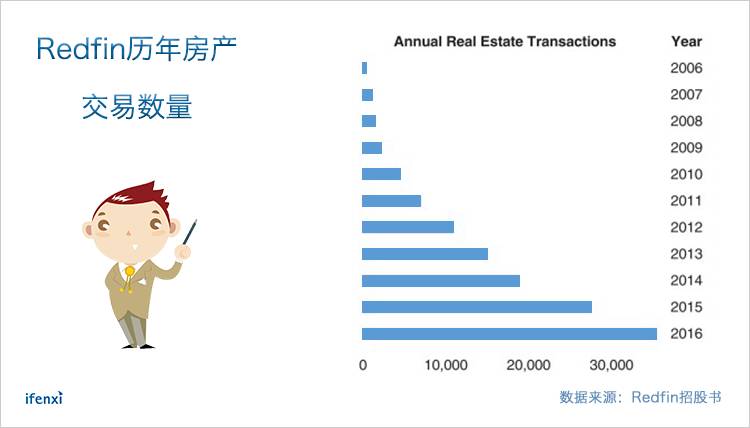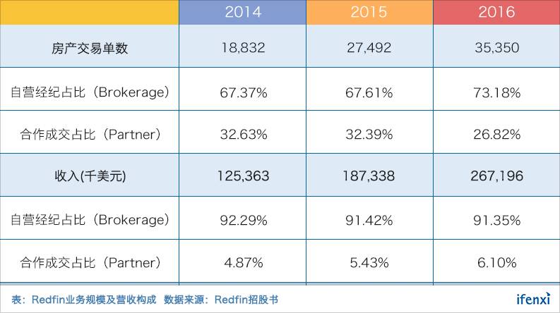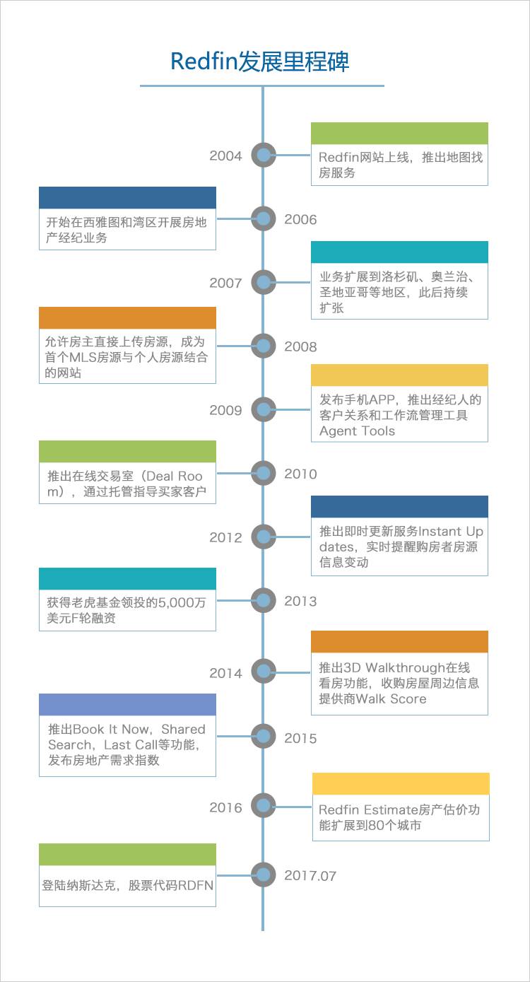 从2006年开展房地产经纪业务至今,Redfin围绕提升房产买卖双方及经纪人的交易体验和效率,推出一系列服务和工具;业务范围也扩展到美国37个州的84个区域市场,覆盖美国人口70%,拥有近千名经纪人,2016年房产交易量约3.5万单,并于2017年7月在纳斯达克上市。