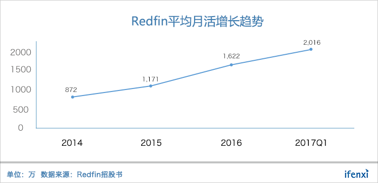 全面有效的房源信息展示推送,以及高效的服务流程,使Redfin在成交效率和客户体验上具备优势。2016年,Redfin的房源平均待售时间是30天,而行业平均水平是36天。此外,Redfin的客户净推荐值是50,远高于38的行业平均水平。