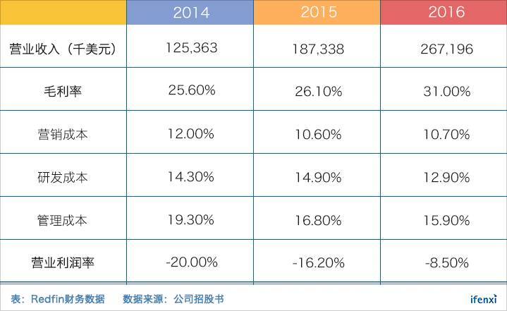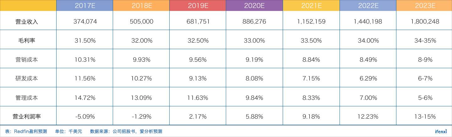 Redfin的商业模式是否可行,要看长期能跑出多少利润空间。其未来盈利预期取决于收入、毛利率的提升以及营销、研发和管理成本的下降。