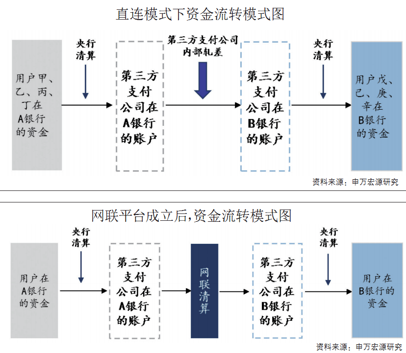 但是,第三方支付机构直连银行的模式存在资金监管方面的漏洞。第三方支付机构采用直连模式与银行业金融机构直接对接。在直连模式下,支付机构可以在多家银行开立账户,这样资金在同一家支付机构内部流转,支付机构只需在内部轧差之后,调整不同银行账户的金额,就完成所有支付交易的流程。“在这个过程中,支付交易的具体信息只会留存在支付机构内部,而监管机构只能够看到支付机构在各家银行账户上的资金变动,无法有效监管支付过程中的违法违规现象,容易产生金融风险。”申万宏源证券分析师阮晓琴表示。