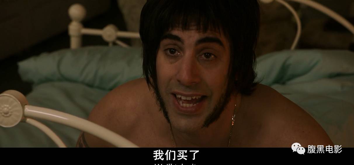 包脸锅盖头,络腮胡子一直快到了下嘴唇的奇葩造型的就是我们的主角之一诺比(萨沙·拜伦·科恩 饰)。影片一开头就是一场“不可描述”的画面。镜头前诺比赤裸着上身和老婆大人正在调情,老夫定睛一看,不用掐不用算,我就能知道这就是传说中商业片固定套路——“开场夺目大法”