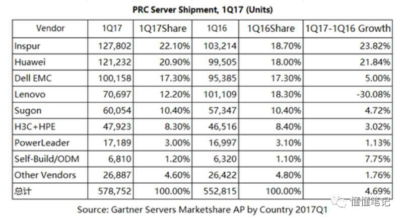 根据Gartner的相关数据,2017年Q1浪潮服务器的出货量为12.78万台,比去年同期增长23.8%,占据市场份额为22.1%,依旧位列国内服务器排名榜首。