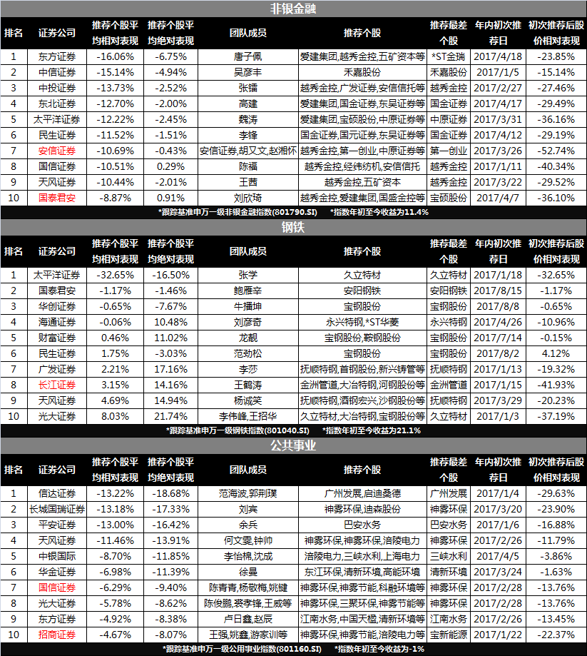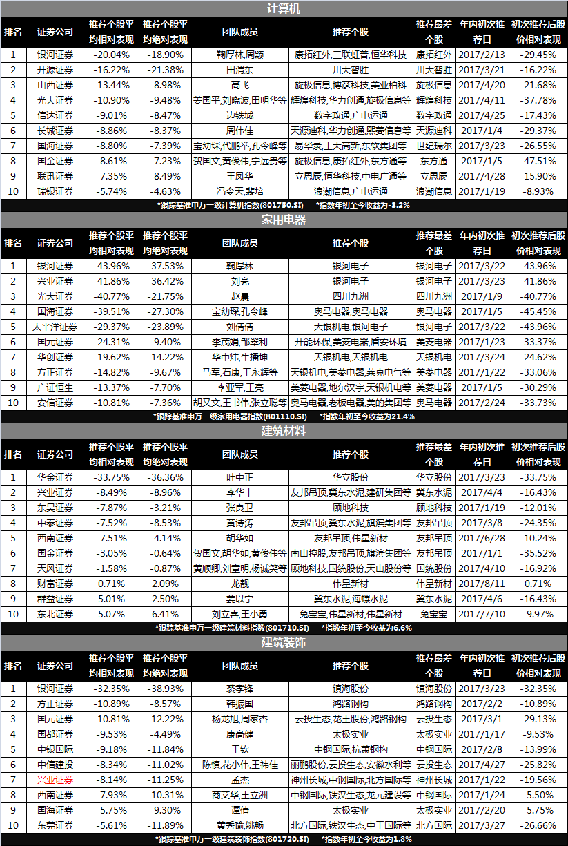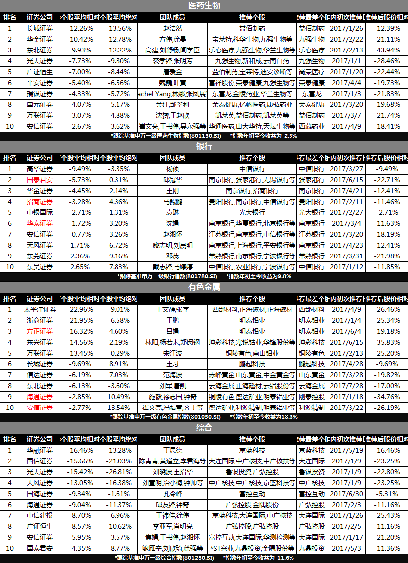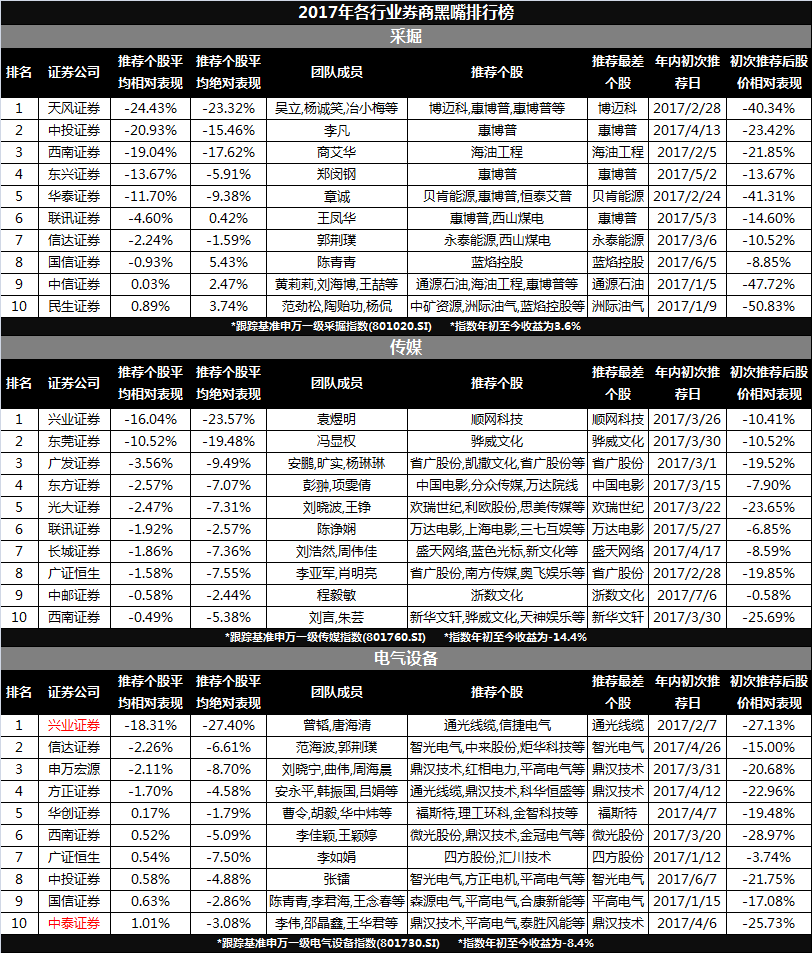 为避免存在偏见,我们从多角度出发,还提供了以相对及绝对收益进行排名的券商黑榜,详见下表。