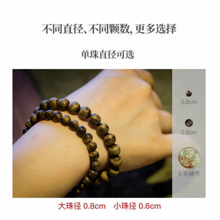 三、平时沉香不需要上油或蜡,生闻沉香原始的味道才是最真。沉香在使用时会形成自然包浆,味道也会变得淡一些。这种情况下,晚上睡觉时把它放在枕头下面或用密封塑料袋封装,对于一款好的沉香手串来说,此时就会释放出一阵一阵的香味。