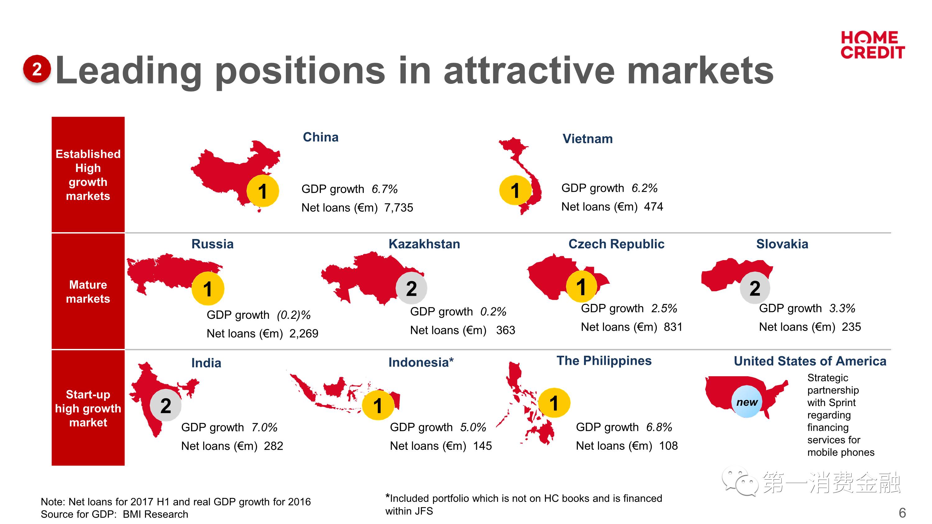 捷信将其在全球的市场分为已经立足的高增长市场、成熟型市场和处于起始阶段的高增长市场。